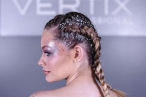 As tranças laterais com glitter na raiz também aparecem entre as mais pedidas. Além de funcionais para o calor, entregam impacto visual imediato. O glitter em gel aplicado com pincel e finalizado com spray fixador ajuda a prolongar o efeito festa.