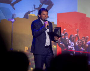 Luciano Huck também esteve no palco para apresentar o quadro “Histórias que transformam”, que trouxe as trajetórias de Amanda Oliveira, da ONG Nação Valquírias, e de Carliene da Silva Ferreira, moradora da Favela dos Sonhos.