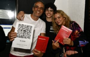 E os dois filhotes do casal encaram também o batente. Enquanto Joaquim Guéron comanda a cabine de som, Francisco, o Chico, está na banca onde são vendidos os livros a partir do texto do espetáculo, calcado nas vivências da própria Isabel.