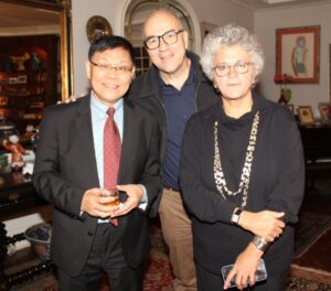 À mesa também Huang Yehua, empresário do setor petrolífero chinês, e Li Bo, editor-chefe do jornal Guancha. Na ocasião, Dilma teve oportunidade de reencontrar três de suas ex-ministras: Tereza Campello (Desenvolvimento Social), Katia Abreu (Agricultura) e Izabella Teixeira (Meio Ambiente) e hoje cidadã do mundo devido a seu notório saber sobre as questões climáticas.