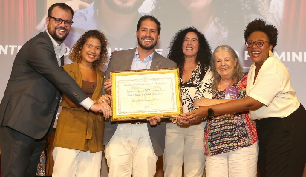 Marcio entre Lucas Padilha, Maira do MST, Marina do MST, Bete Mendes e Taina de Paula