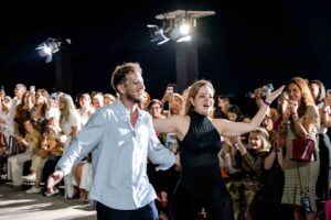 E a Cidade das Artes Bibi Ferreira, na Barra da Tijuca, foi o local escolhido pela empresária Bianca Gibon apresentar sua coleção. E parte da área externa daquele imenso pilotis foi transformada em passarela.