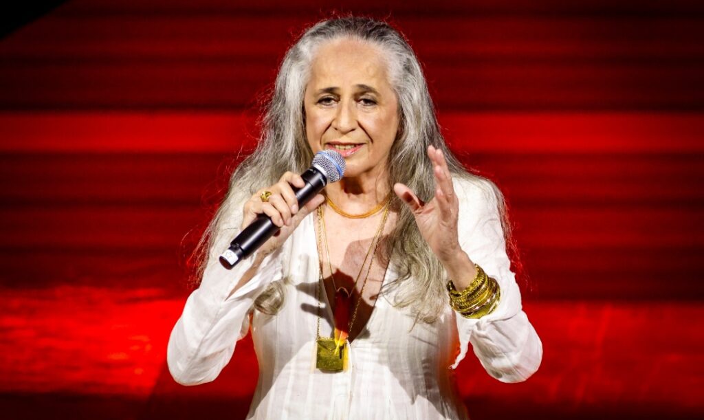 Dois exemplos são “O lado quente do ser”, de Marina Lima e Antonio Cícero (1945-2024), e “Gota de sangue”, de Angela Ro Ro (1949-2025). A cantora brinda ainda seu público com as inéditas “Palavras de Rita”, de Rita Lee (1947-2023) e Roberto de Carvalho, e com “Vera Cruz”, de Xande de Pilares.