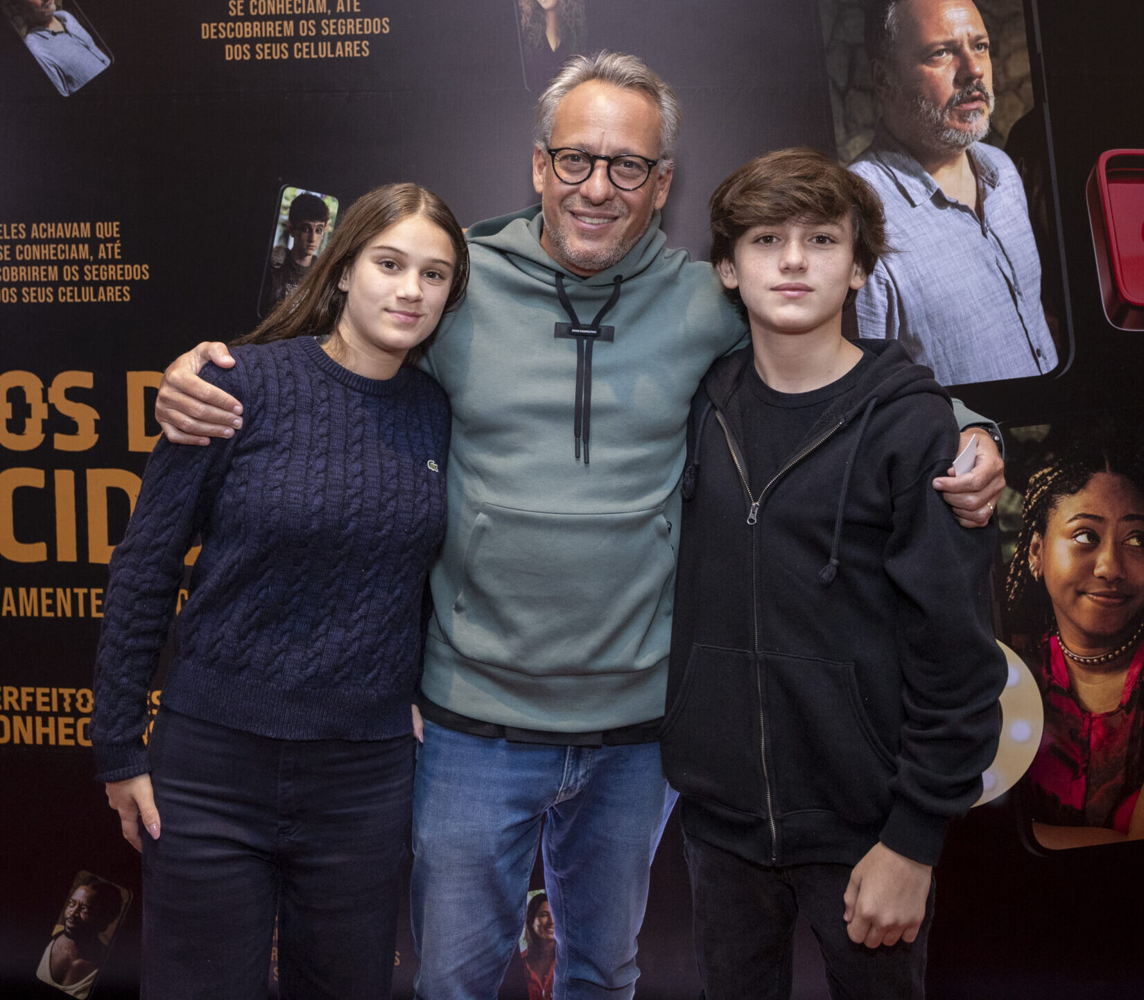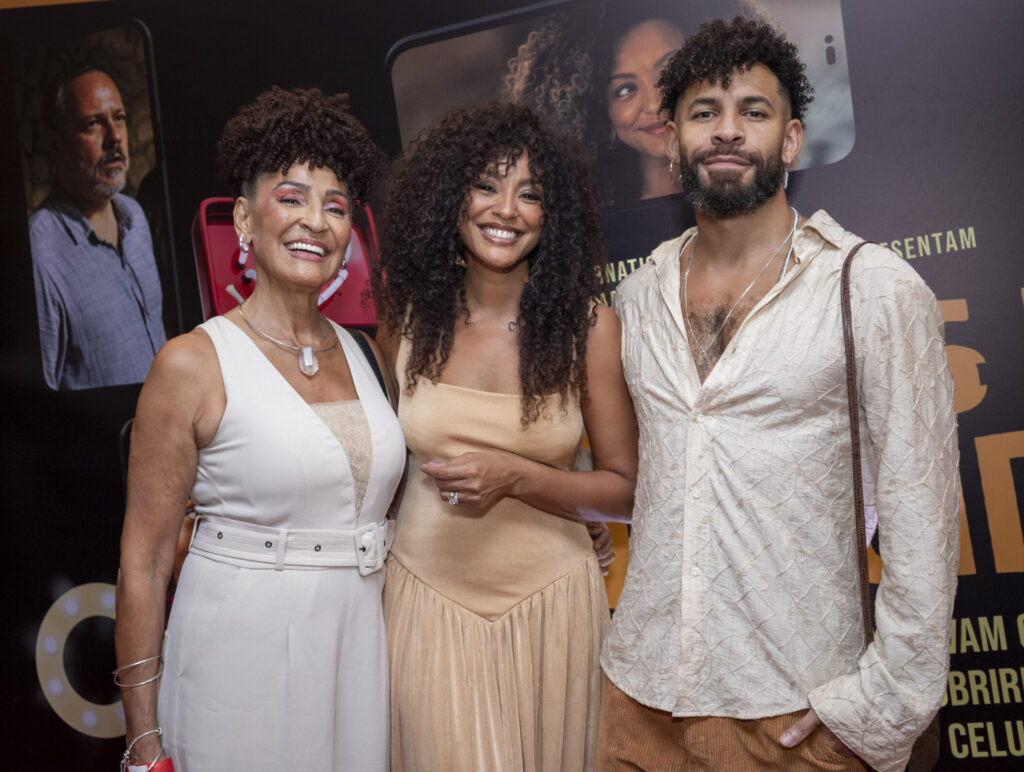 Sheron Menezzes brilha na pré-estreia de “Perfeitos desconhecidos” ao lado da mãe, Veralinda, e do irmão, Drayson