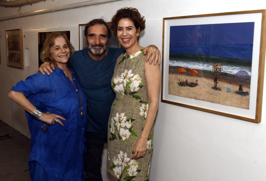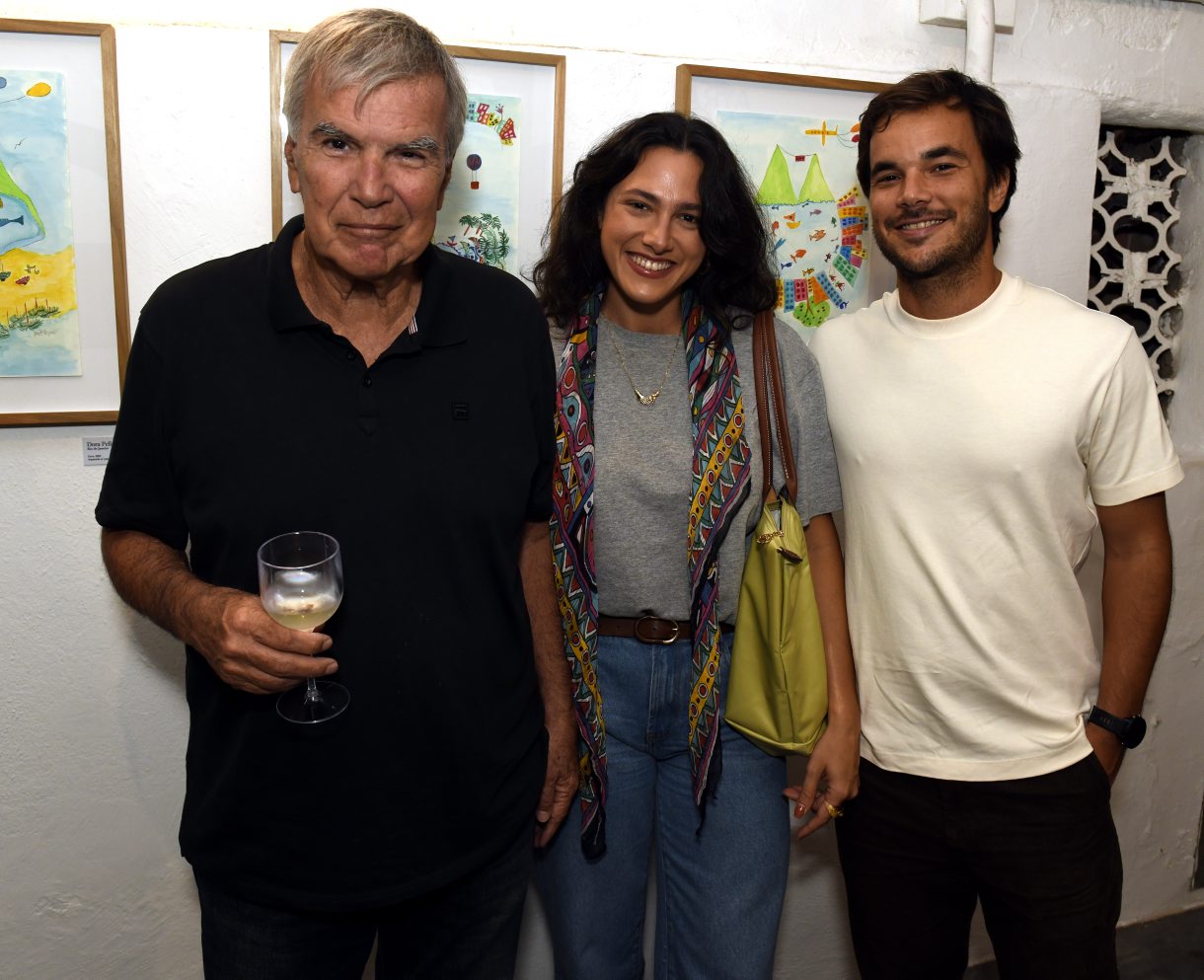 Os artistas Dora Pellegrino e Edgar Duvivier recebem Maria Clara Gueiros em vernissage com desenhos da Cidade Maravilhosa
